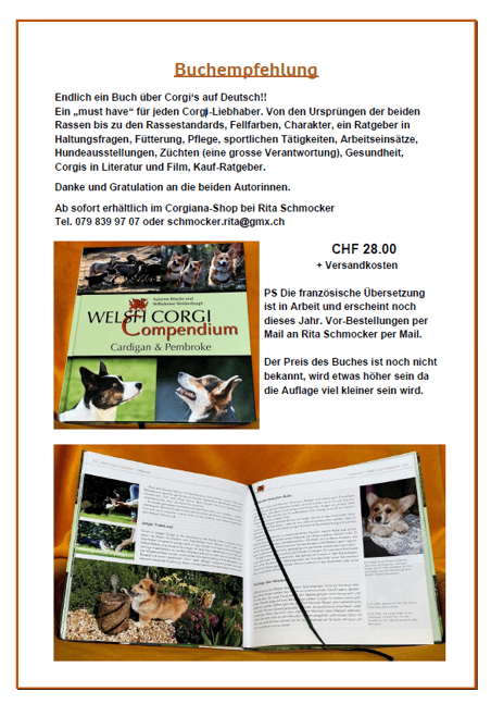 Enfin, voici l'édition française du livre Corgi, disponible à partir de juillet 2021. Vous pouvez commander le livre sur schmocker.rita@gmx.ch. Le livre coûte CHF 34.00 plus les frais d'envoi.